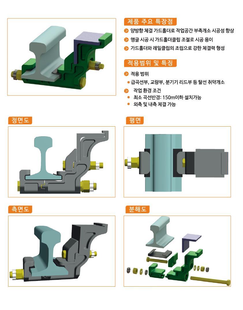 가드록더와 레일클립의 조립으로 강한 체결력 형성